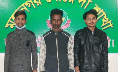 রাজশাহী মহানগরীতে ছিনতাইয়ের প্রস্তুতি গ্রহণকালে ৩ ছিনতাইকারীকে আটক করছে রাজশাহী মহানগর গোয়েন্দা পুলিশ (ডিবি)। এসময় আসামীদের কাছ থেকে ছিনতাইয়ের কাজে ব্যবহৃত ২ টি চাকু ও ১ টি হাতুড়ী উদ্ধার হয়। বিস্তারিত পড়ুন...