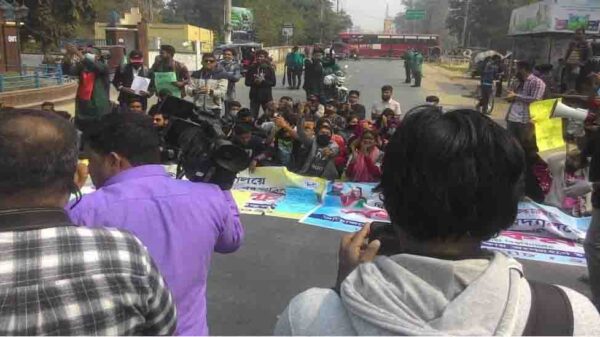 রাজশাহী বিশ্ববিদ্যালয়ে দ্বিতীয়বার ভর্তি পরীক্ষা চালুর দাবিতে মহাসড়ক অবরোধ করে অবস্থান কর্মসূচি করেছে রাজশাহী বিভাগের ভর্তি ইচ্ছুক শিক্ষার্থীরা। বুধবার ৯ ফেব্রুয়ারি বেলা ১১ টায় বিশ্ববিদ্যালয়ের মূল ফটকের সামনের রাজশাহী-ঢাকা