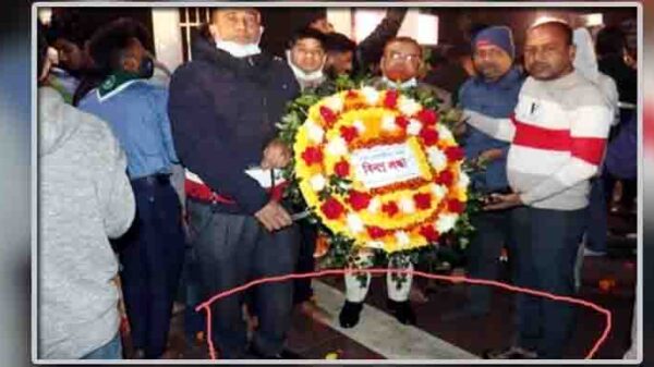 সাতক্ষীরায় শহীদ মিনারের পবিত্রতা নষ্ট করে জুতা পায়ে শ্রদ্ধাঞ্জলি নিবেদনের ঘটনা ঘটেছে। জুতা পায়ে শহীদ মিনারে সাতক্ষীরার হিসাবরক্ষণ অফিসের কর্মকর্তারা উঠেছিলেন। সোমবার (২১ ফেব্রুয়ারি) জেলার শহীদ আব্দুর রাজ্জার পার্কে অবস্থিত